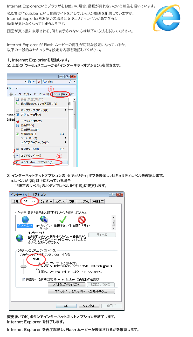 1.ページにアクセスすると、「Adobe Flash Plyaer」のインストールが必要かどうか指示が書いてありますのでお読み下さい。
